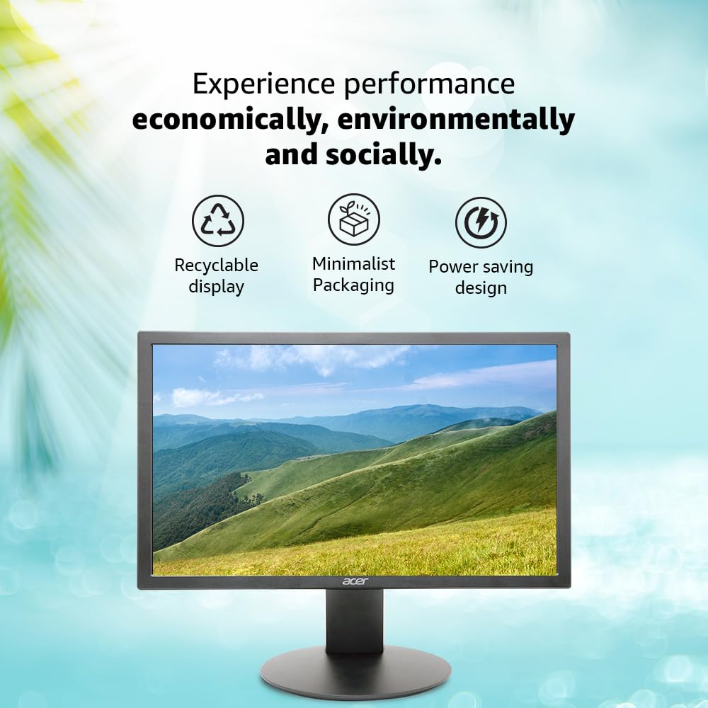 acer K202Q 19.5 Inch HD+ 1600 X 900 Pixels LCD Monitor with LED Backlight I 200 Nits Brightness I VGA, HDMI Port with Inbox HDMI Cable I Eye Care Features I Tilt Option I Wall Mount Option I Black