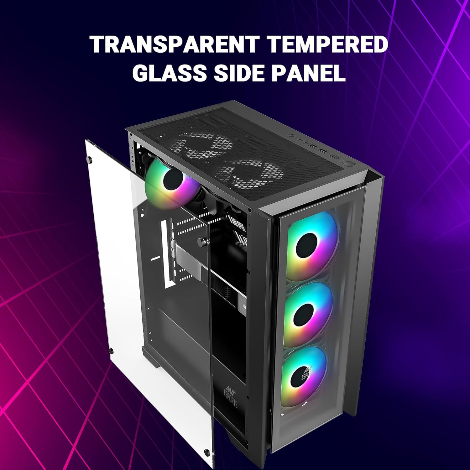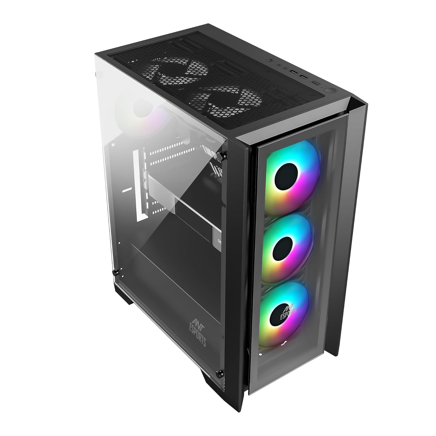 Ant Esports ICE-170TG Mid-Tower Computer Case/Gaming Cabinet – Black | Support ATX, Micro-ATX, ITX | Pre-Installed 3 Front Fans & 1 Rear Fan