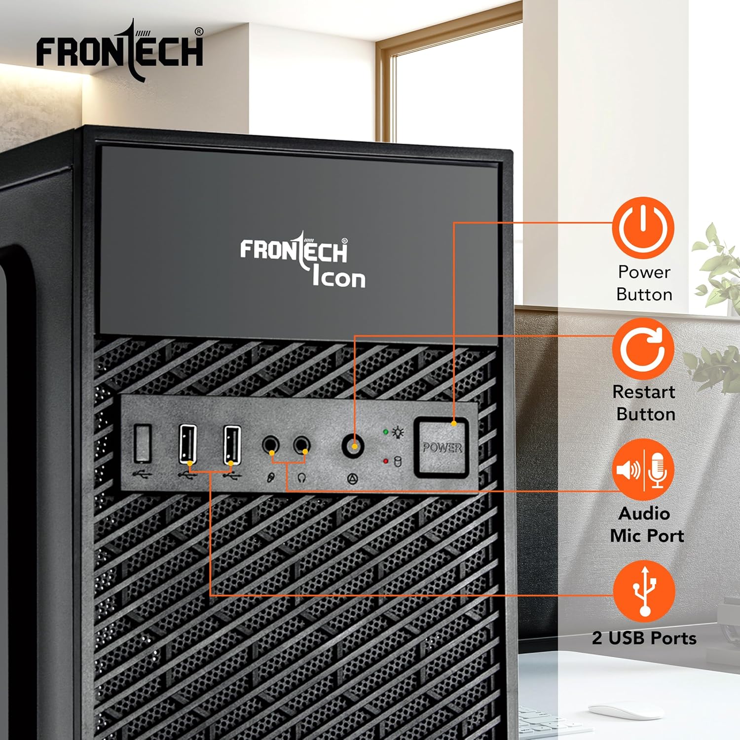 FRONTECH ICON Computer Cabinet | Home & Office Use | Silver Range | Enhanced Airflow Design | Dual Front USB & Audio Ports | Rear-Mounted SMPS | ATX/Micro-ATX Motherboard Support (FT-4371)