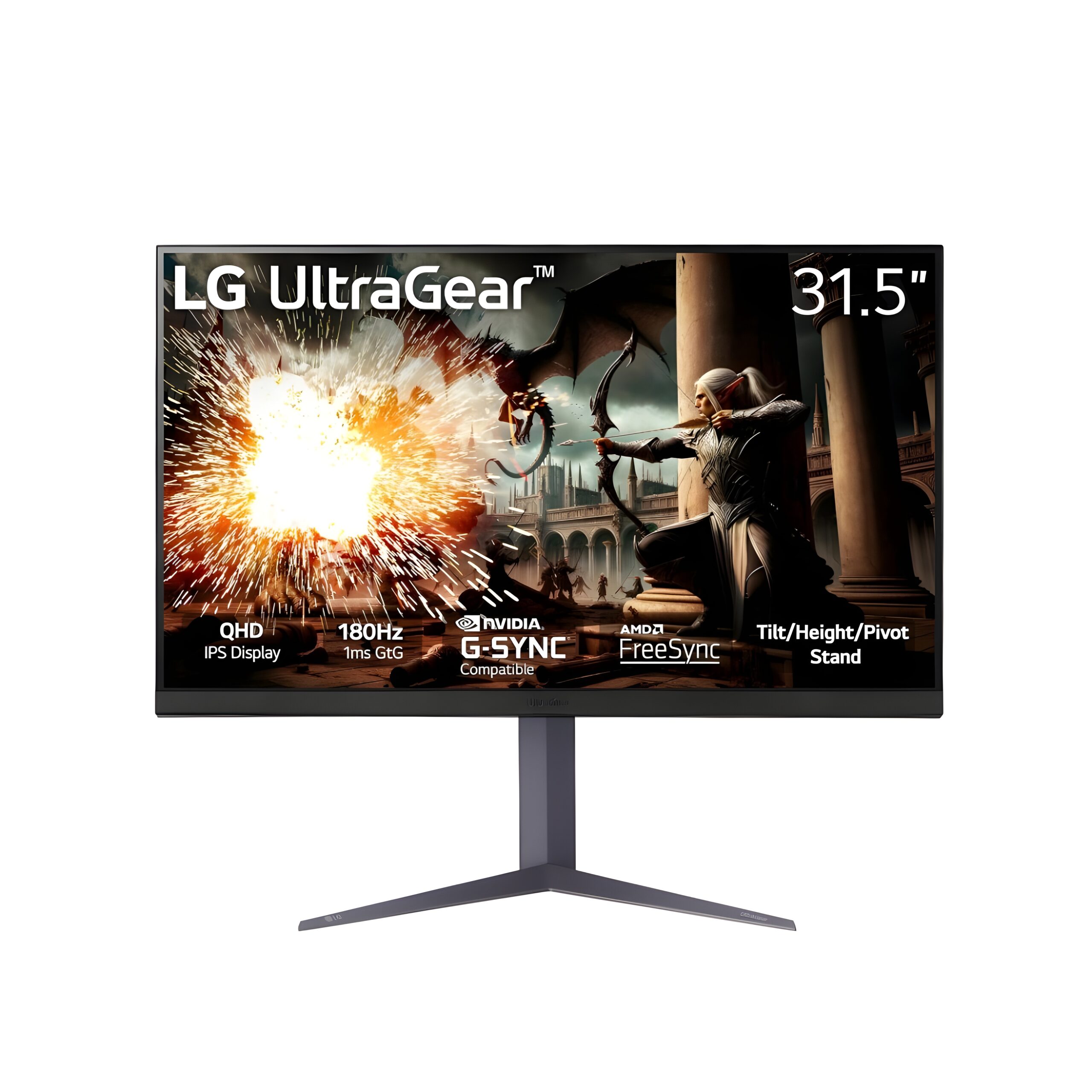 LG 32GS75Q 32 Inch QHD (2560×1440) IPS Ultragear Gaming Monitor, 180Hz, 1ms, DisplayHDR 400, NVIDIA G-SYNC Compatible, AMD FreeSync, HDR10, Tilt/Height/Pivot Stand, HDMI, DisplayPort, Black Colour