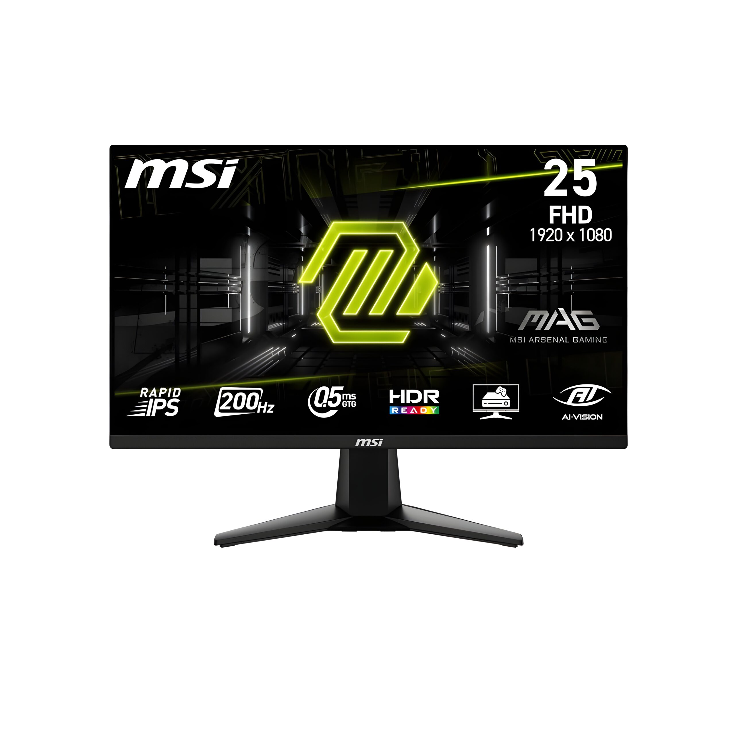 MSI MAG 255F E20 24.5-Inch FHD 1920×1080 Gaming Monitor, 200Hz, 0.5ms, HDR Ready, AMD FreeSync Premium, Eye Care, AI Vision, HDMI 2.0b, DP 1.2a, Frame-Less, Tilt Adjustable, Vesa Mount, Black
